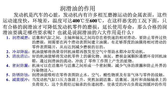 润滑油的作用